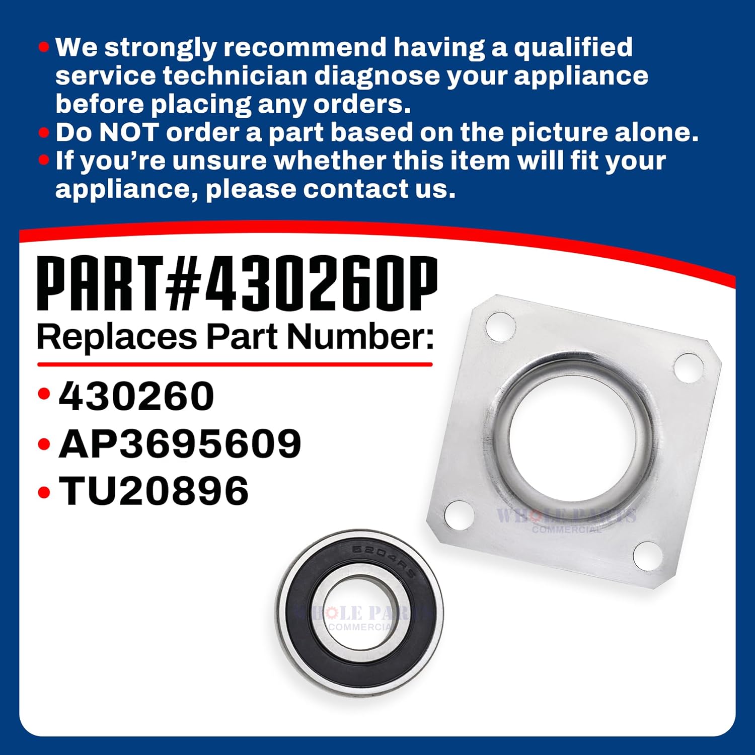 Dryer Trunnion Bearing & Housing Assy Part# 430260P. This Part Replaces AP3695609, 430260, TU20896.