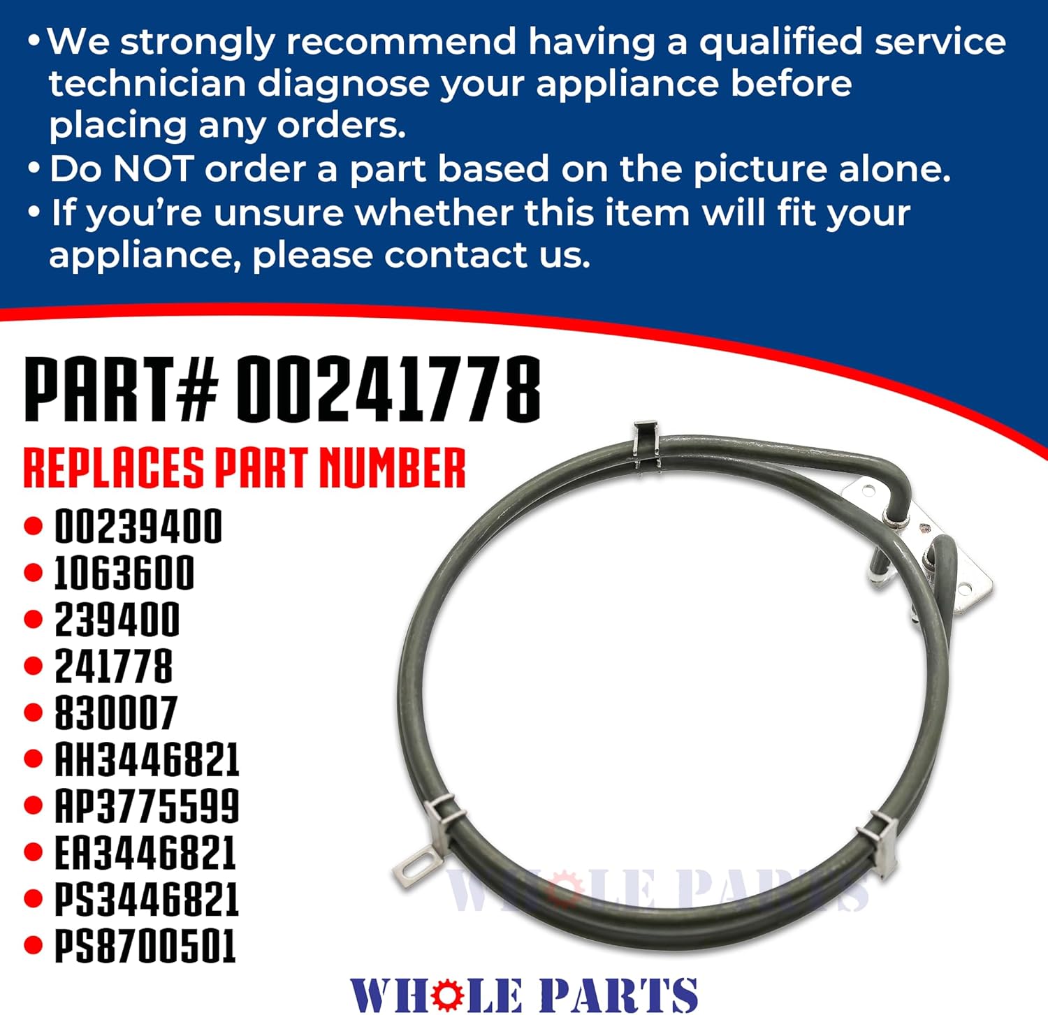 New 00241778 Range Oven Convection Heating Element for Bosch.Part number 00241778 replaces AP3775599, 00239400, 1063600, 239400, 241778, 830007, AH3446821, EA3446821, PS3446821, PS8700501.
