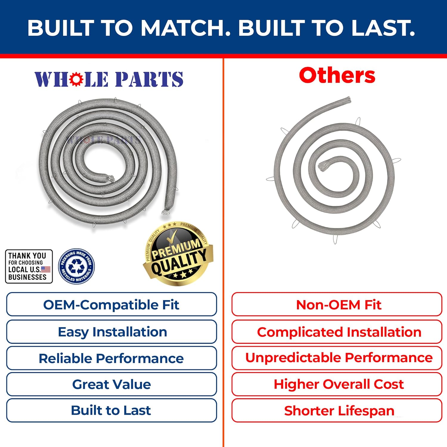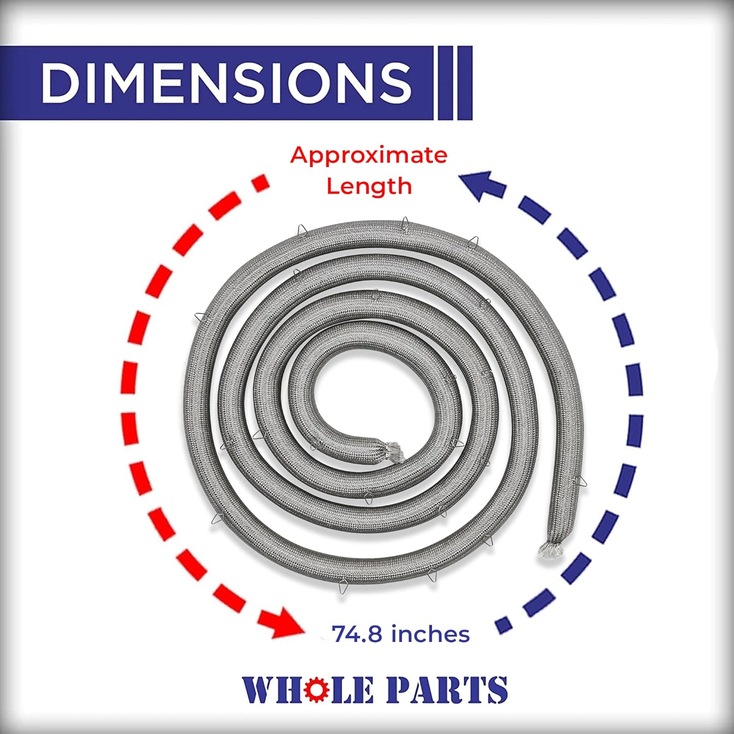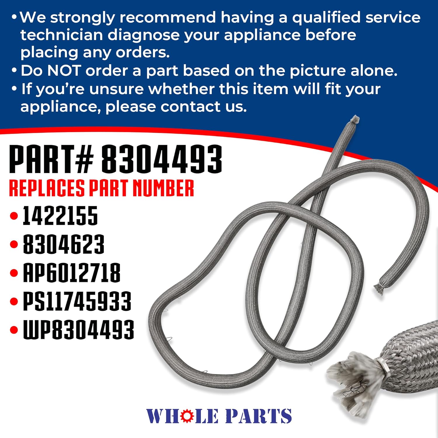Whole Parts Range Oven Door Seal Gasket (Including 21 Clips) Part# 8304493. Approximate Length is 74.8 inches. This Part Replaces AP6012718, WP8304493, 1422155, 8304623, PS11745933.