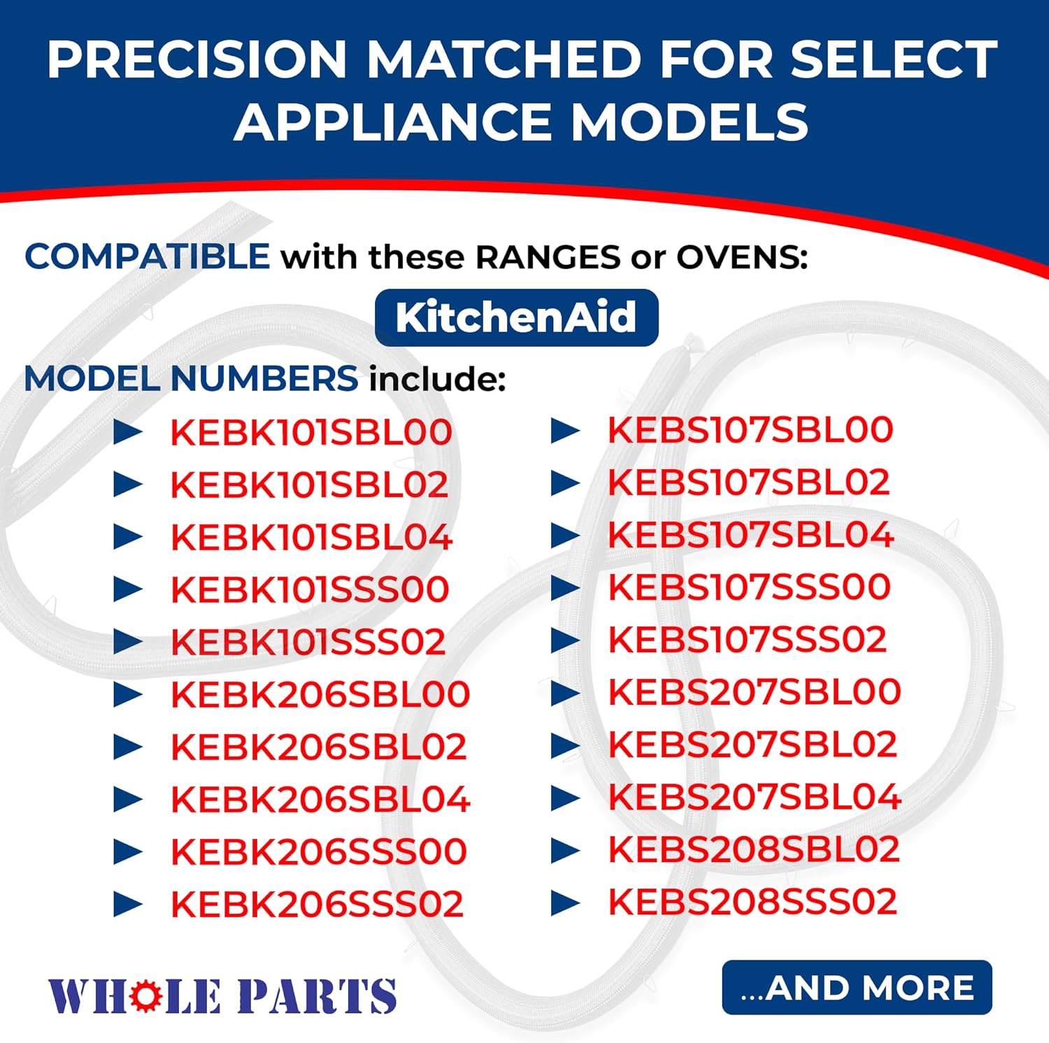 Whole Parts Range Oven Door Seal Gasket (Including 21 Clips) Part# 8304493 - Replacement and Compatible with Some Kitchen Aid Ranges or Ovens