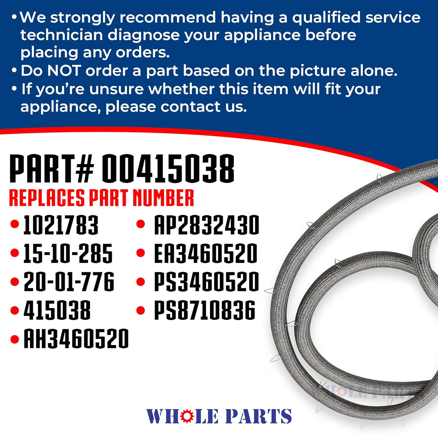 Whole Parts Range Oven Door Seal Gasket (Including 28 Mounting Clips) Part# 00415038. Approximate Length is 78.74 inches. This Part Replaces AP2832430, 1021783, 15-10-285, 20-01-776, 415038, AH3460520, EA3460520, PS3460520, PS8710836.