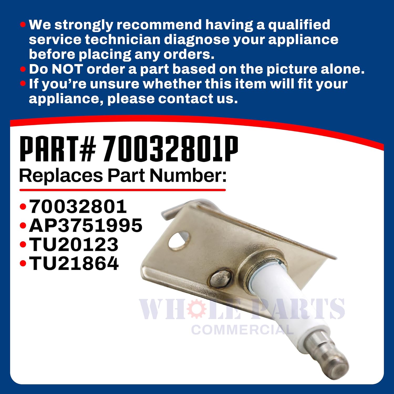 Commercial Dryer Electrode Spark Igniter (4 PCs) Part# 70032801P. This Part AP3751995, 70032801, TU20123, TU21864.