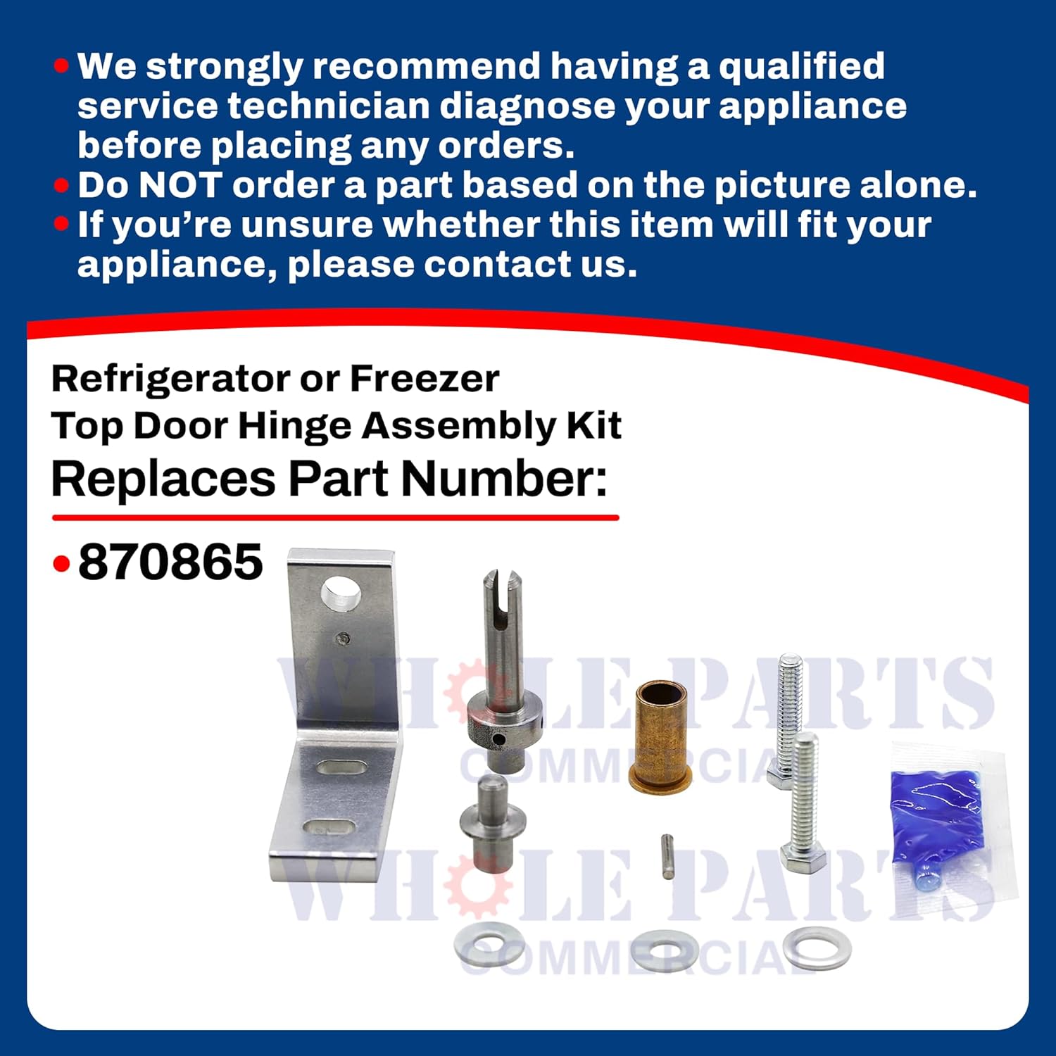 Whole Parts Commercial Refrigerator or Freezer Top Door Hinge Assembly Kit Part# 870865 - Replacement and Compatible with Some True Refrigerator