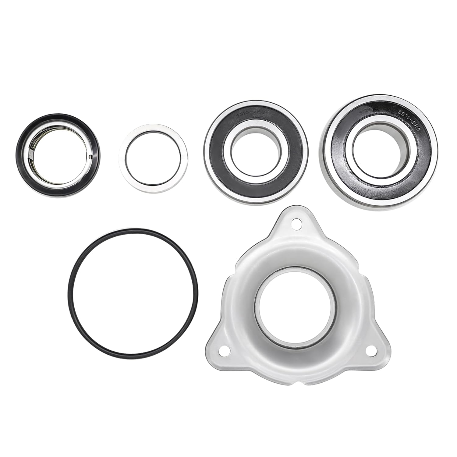 Washer Bearing Kit 58mm HC135 HC165 WF150 WFF150 WF165 WFF165 WF185 WFF185 WF135 WFF135 WE234 WE176 WE181. Replaces Part # 212/00101/00 , 212/00102/00. Also referred to as: – Part #:388P4, – SSY BRNG HSG CMPL WF135-165. Kit contents: 1 x 212/00024/00, F100134 – Bearings 6310; 1 x 212/00004/00 – Bearing 6311; 1 x Axial Seal 58mm, Replaces: GW58, 219/00003/00,9001482, PRI 530030012, 4PR530030012, 422190000300, 3940TE088058; 1 x Counter Ring 58mm, Replaces: 219/00004/00, 9001483, PRI 530030013, 422190000400; 1 x 119/00001/00 – Seal Plate 58mm; 1 x 217/00002/00 – ‘O’ Ring.