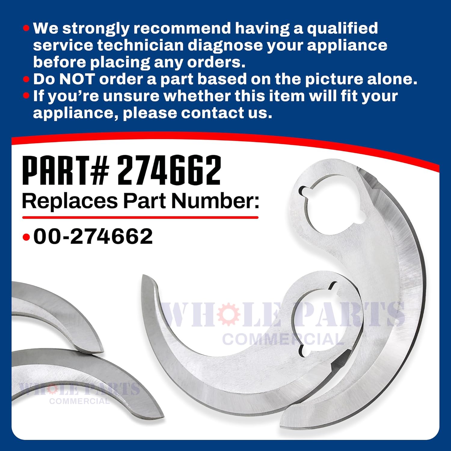 Whole Parts Food Cutter Knife Blades (Set of 2) Part# 274662 - Replacement and Compatible with Some Hobart Choppers